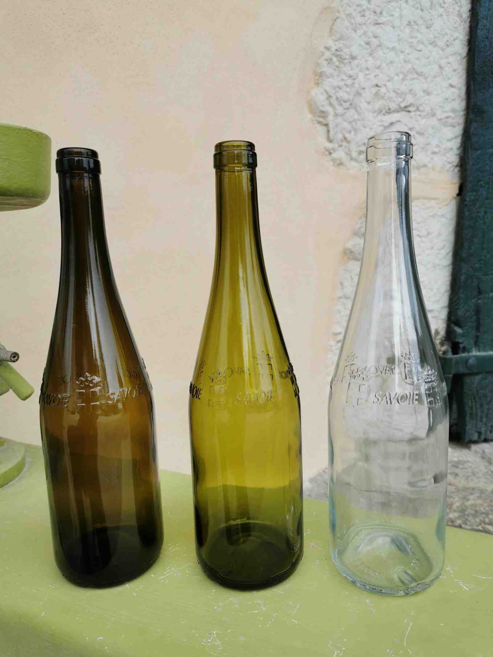 Vend bouteilles de vin avec le logo "Vin de Savoie" homologué par le CIVS en 75cl en 3 coloris: Feuille morte : 848 Pièces Chêne : 121 Pièces Transparente : 556 Pièces 0.15cts /bouteille A VENIR CHERCHER SUR LE DOMAINE